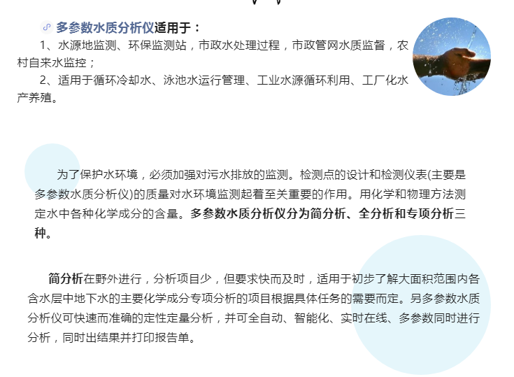 • 今日講解多參數水質分析儀的用途和工作原理