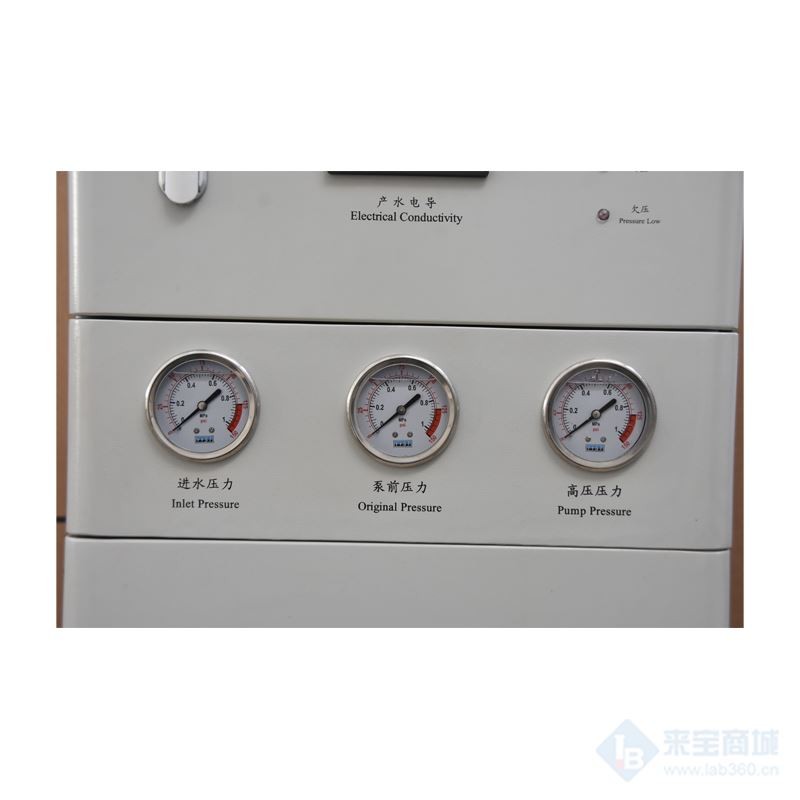 3.雙出水口,一個反滲透水出水口,去離子出水口,一機兩用,清洗實驗器皿的時候用反滲透水可減少純化柱損耗,節約維護成本;