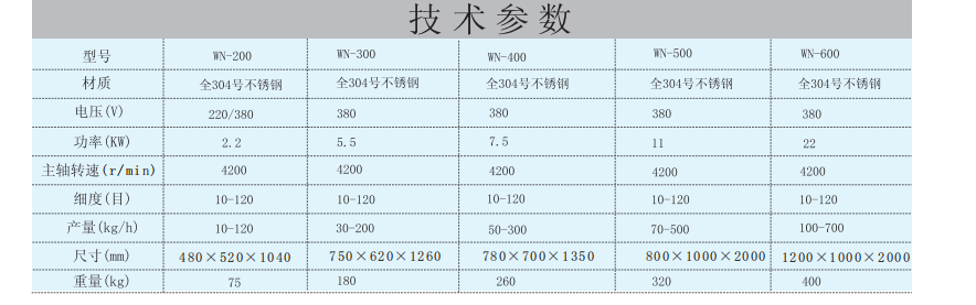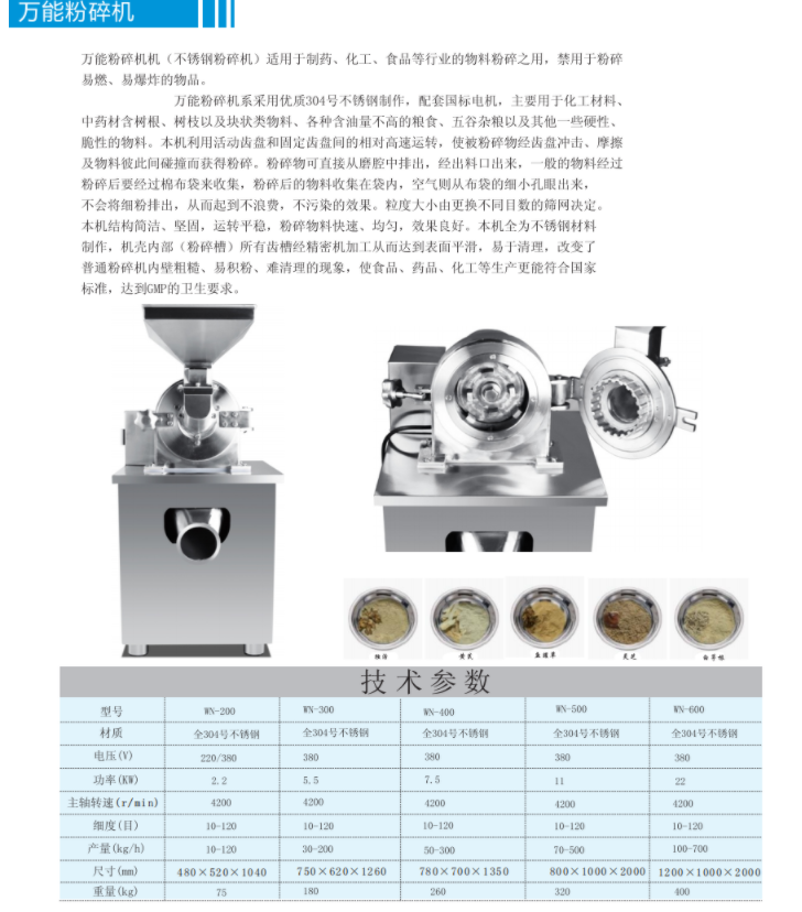 WN-200全能粉碎機產(chǎn)量10-120kg/h,不銹鋼制作,本機結構簡潔,堅固,運轉(zhuǎn)平穩(wěn),粉碎物料快速,均勻,效果良好。