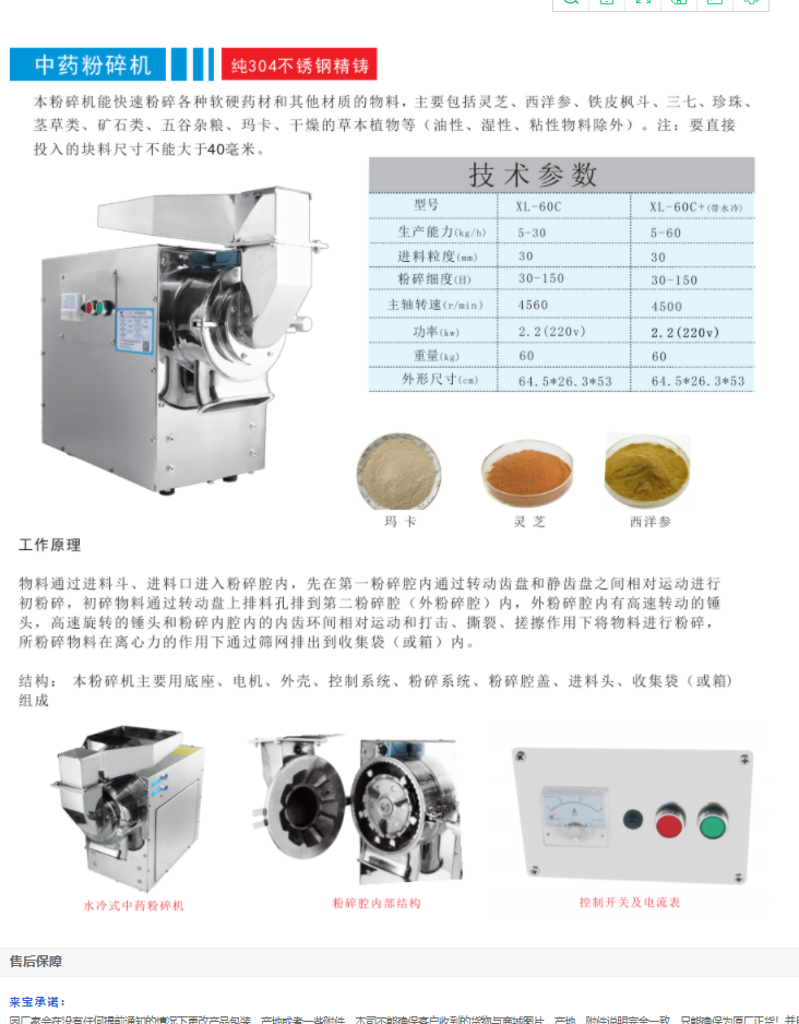 XL-60C大容量中藥粉碎機快速粉碎各種軟硬藥材,304不銹鋼