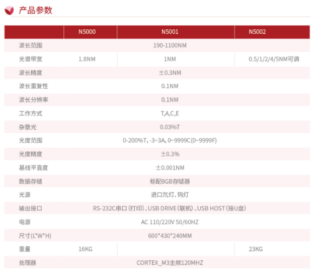 大屏幕紫外可見分光光度計N5002,比例監測雙光束能補償光源變化的影響,抑制漂移,7英寸真彩液晶大屏幕顯示,數字式薄膜按鍵輸入。
