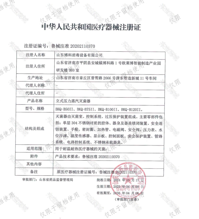 所屬類目:II類:11-01濕熱消毒滅菌設備批準文號:魯械注準20202110370