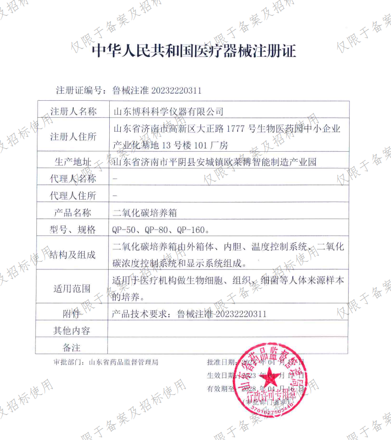 批準(zhǔn)文號:魯械注準(zhǔn)20152220120,(備注:原魯械注準(zhǔn)20152410120)